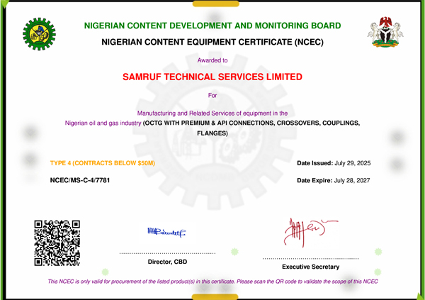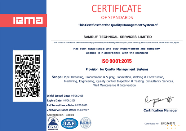 Samruf Technical Services is fully certified and accredited to deliver top-tier solutions in Machine Shop Services, Welding and Fabrication, Dimensional/Conformity Checks, Threading of all types of API & PREMIUM Thread Connections, and the production of Cross-Overs, Pup Joints, Flow Couplings, Blast Joints and All Well Completion Accessories. We also offer Oil Tools and Machine Tool Solutions, Instrumentation and Calibration, Teflon and Metal Drift Mandrels, Flanges, Ring-Grooves, Gears, Splines, and Sprockets, along with Marine Shafts, Keyways, Nuts, and Bolts. Our capabilities cover Drill-Collars, Drill-Pipes, Tubing, and Casing Pipes; Stabilizers, Pony Collars, Monels, and Steel Components; and the Modification of Mud Pump Modules. Additional services include Buckling and Unbuckling, Drilling, Boring, and Large-Diameter Tapping, as well as Onshore and Offshore Machining. We provide comprehensive Wellhead and Xmas Tree Design and Services, Oil Well Completion Tools and Services, Casing and Tubing Hangers Modifications, Elevator, Clamps, and Lifting Nubbing Solutions, and Tool Rentals with Specialized Support. Every service is delivered under strict quality control, supervised by trained professionals, and executed with precision certified equipment.